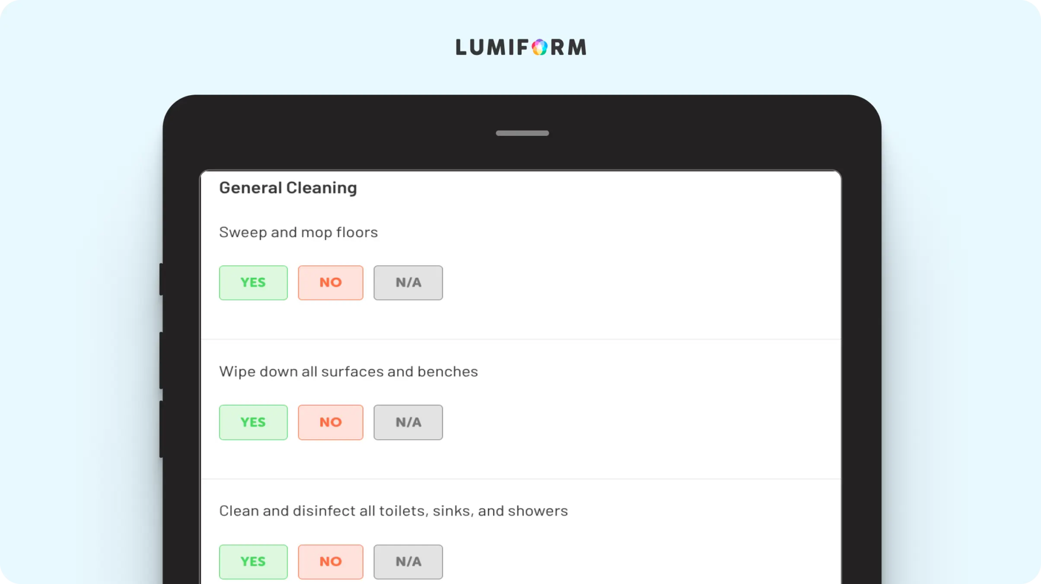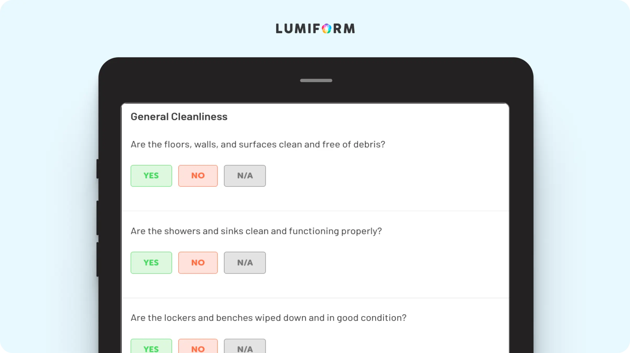 Enhance your cleaning protocols with this detailed checklist for janitorial staff and cleaning supervisors. It includes tasks based on surface type and includes verification steps for proper chemical usage and disinfection procedures. You can adapt this template by adjusting cleaning frequencies based on your peak usage times. Consider adding specialized instructions too for dealing with challenging areas like shower drains or steam rooms. Sign up for the Lumiform app to access this digital template and improve cleaning accountability.
