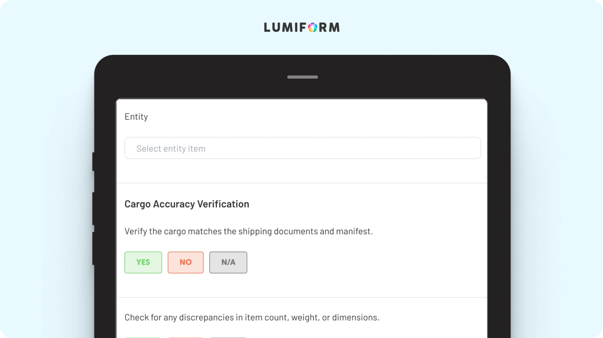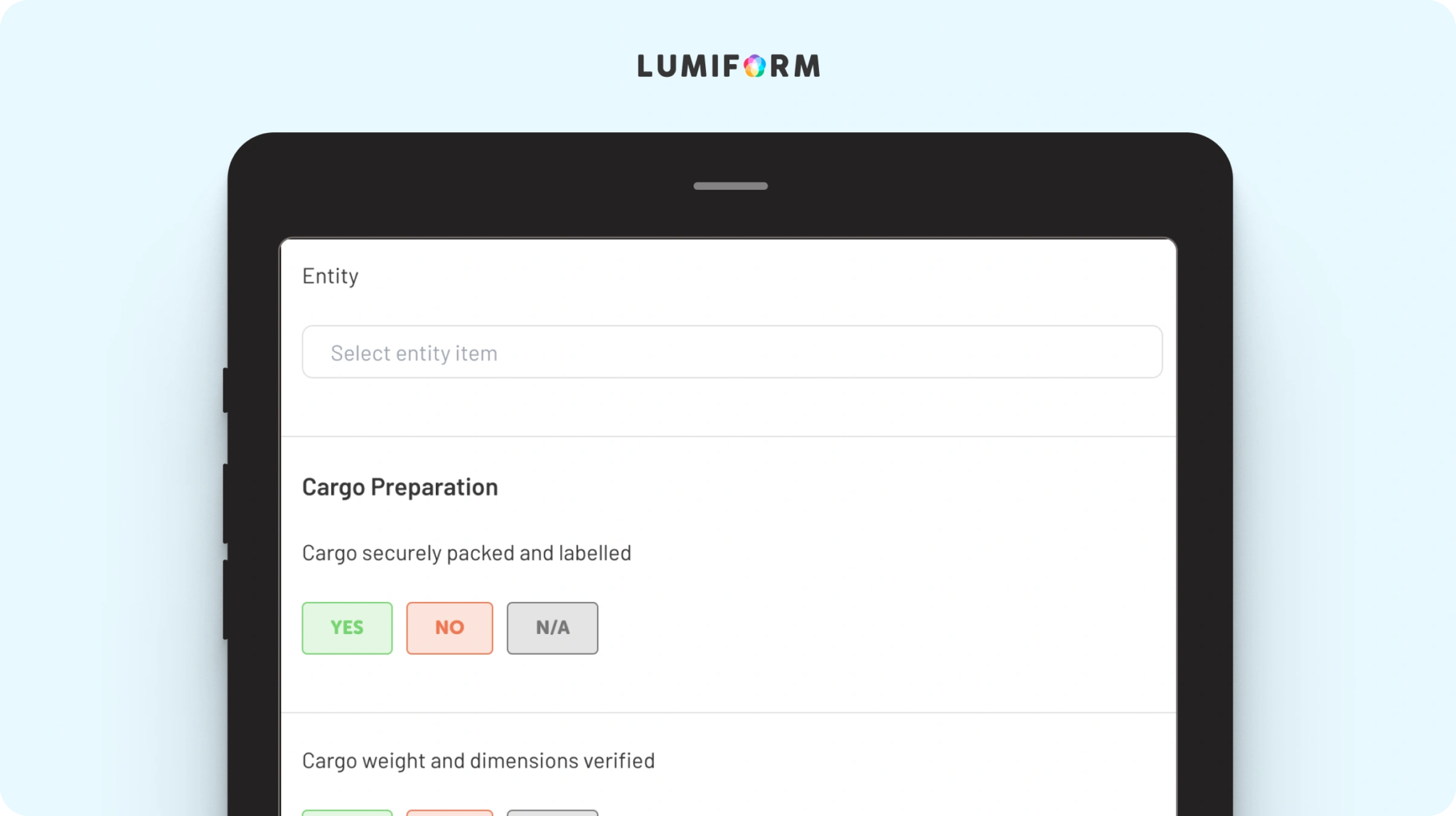 This specialized template focuses on safe and efficient cargo handling using forklifts during the loading process. It includes verification points for equipment condition, operator qualification, and proper lifting techniques. You can customize the template to address specific challenges in your loading environment, such as narrow aisles or variable load types. Sign up for Lumiform to access this and other specialized equipment checklists.ADR loading and unloading checklist