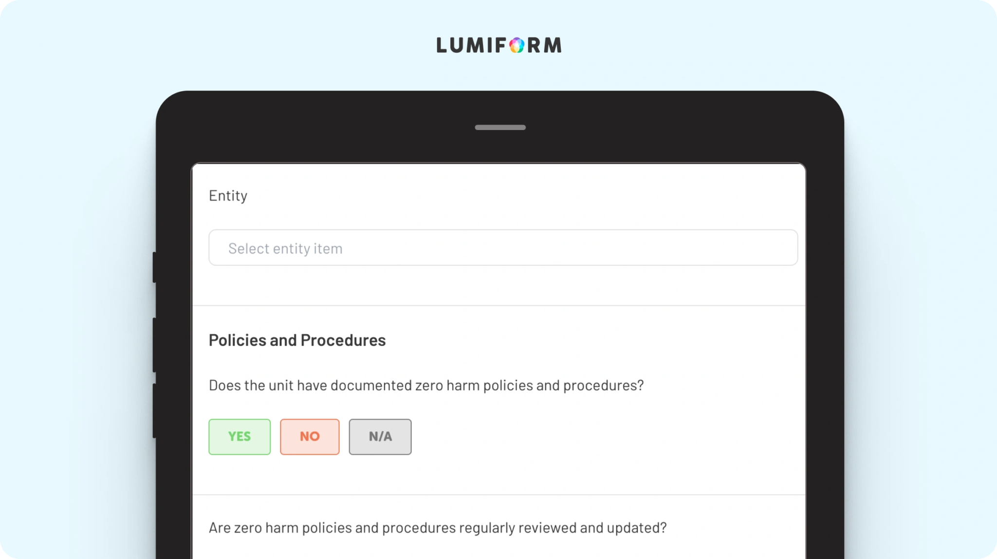 Evaluate the overall effectiveness of your zero harm initiative with this comprehensive program assessment template. It helps you audit safety leadership commitment, employee engagement, hazard identification processes, and incident investigation quality. Customize the evaluation criteria to align with your organization’s safety maturity and improvement goals. The template includes scoring sections to measure program effectiveness. Sign up for Lumiform to track your safety program’s progress over time.